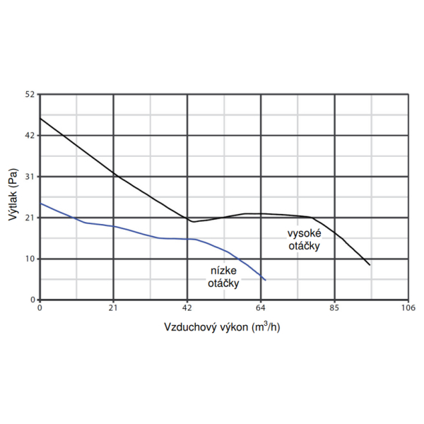 - Dvojotáčkový motor s guľôčkovými ložiskami, ktoré zaisťujú dlhú životnosť ventilátora a bezporuchovú prevádzku ventilátora počas 30 000 hodín.
