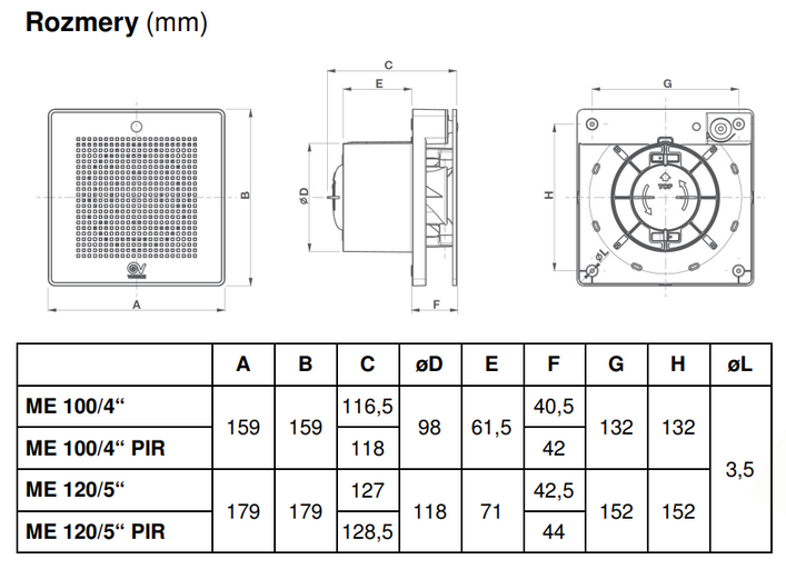 - Ventilátor s pripojením na potrubie ø120mm, vo verzii štandard.