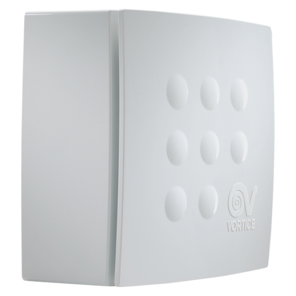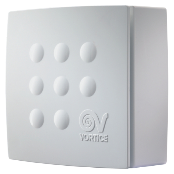 Dvojotáčkový radiálny odsávací ventilátor Vortice Quadro, vhodný pre odsávanie malých a stredných miestností v domácej aj komerčnej sfére, vrátane miestností s vysokou relatívnou vlhkosťou (kúpeľne, WC, pivnice). S časovým spínačom. Vhodný na pripojenie na potrubie s vyššou tlakovou stratou (dlhšie potrubie, nad 4m, koleno). S výfukom do potrubia. Dosahuje vysoký vzduchový výkon pri súčasnom dodržaní nízkej hlučnosti.