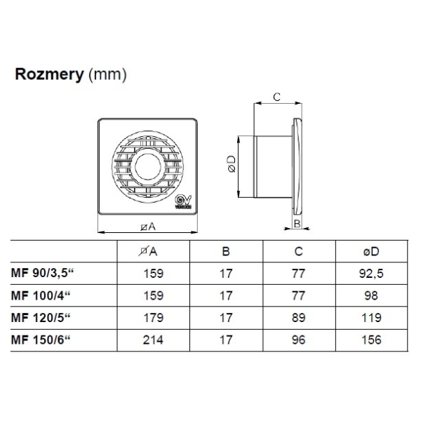 Malý axiálny ventilátor Vortice PUNTO FILO do kúpeľne alebo WC s tenkou prednou mriežkou (len 17 mm) pre „neviditeľnú“ inštaláciu. Spätná klapka, guľôčkové ložiská a senzor pohybu. Tichý ventilátor s nízkou spotrebou energie. Ochrana IPX4. Na pripojenie k potrubiu s priemerom 120 mm. Prietok vzduchu 175 m3/h.