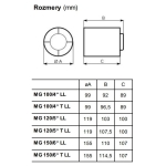 Axiálny odsávací ventilátor Vortice Punto Ghost (MG) s pripojením na potrubie, s guľôčkovými ložiskami. Vhodný pre nepretržité alebo prerušované vetranie kúpeľní, toaliet, kuchýň alebo verejných priestorov. Navrhnuté pre odsávanie cez stenu alebo montáž do krátkeho potrubia. Pripojenie na potrubie Ø 155 mm. Tieto ventilátory môžu byť použité na vyrovnanie teplôt medzi priľahlými miestnosťami.