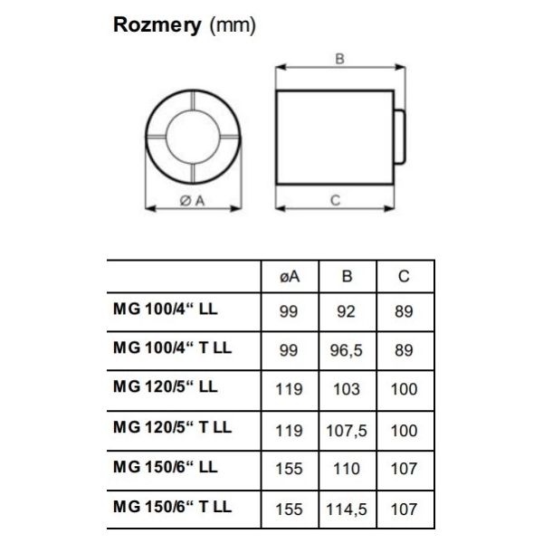 Ventilátor Vortice MG 150/6″ LL