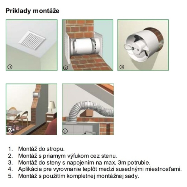 • Montáž na stenu, do podhľadu, stropu alebo vnútorných stien (priečky) pomocou príslušenstva.