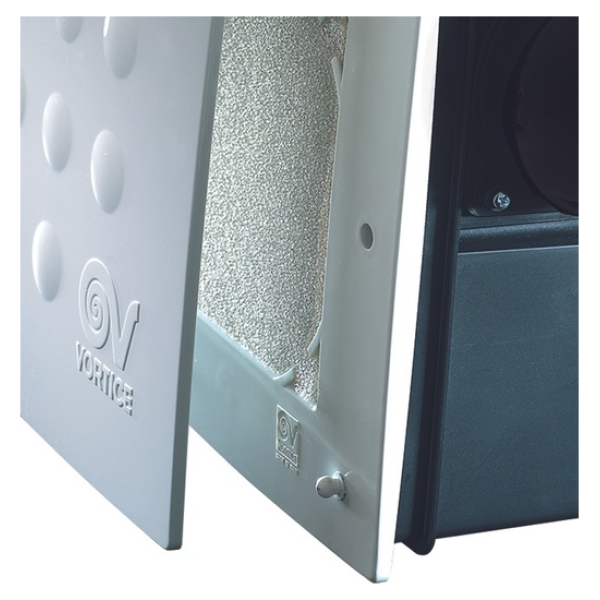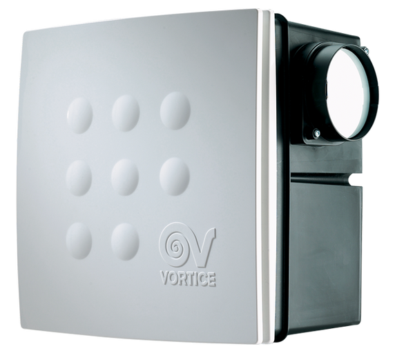 Dvojotáčkový radiálny odsávací ventilátor Vortice Quadro, vhodný pre odsávanie malých a stredných miestností v domácej aj komerčnej sfére, vrátane miestností s vysokou relatívnou vlhkosťou (kúpeľne, WC, pivnice). Ventilátor je schopný odsávať z dvoch miestností súčasne. Vhodný na pripojenie na potrubie s vyššou tlakovou stratou (dlhšie potrubie, nad 4m, koleno). S výfukom do potrubia. So zabudovaným časovým snímačom a snímačom vlhkosti. Dosahuje vysoký vzduchový výkon pri súčasnom dodržaní nízkej hlučnosti.