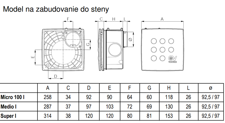 - Zabudovanie do steny – možnosť odsávania z dvoch miestností súčasne.