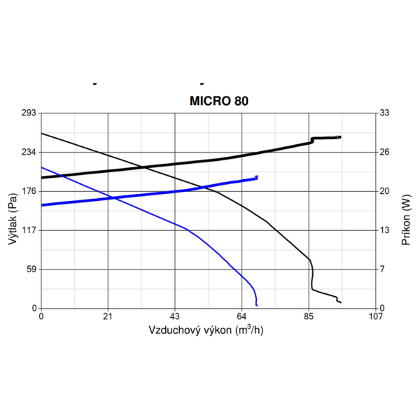 - Zabudovaná spätná klapka (plastová membrána) pre zabránenie spätného prúdenia vzduchu, ak ventilátor nie je v prevádzke.