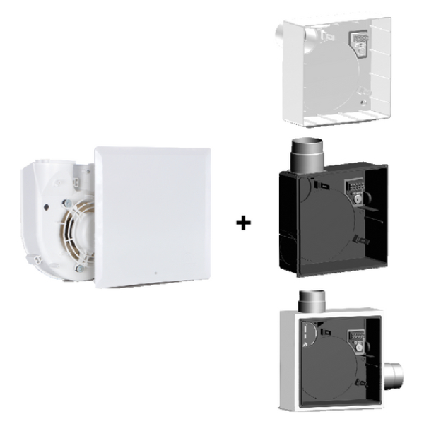 Jednootáčkový radiálny ventilátor s guľôčkovými ložiskami. V balení je iba ventilátor a predný kryt. Dostupné vo verzii štandard, s časovým spínačom (T), pokročilým časovým spínačom (TP), snímačom vlhkosti (TP-HCS) a pohybovým čidlom (PIR). Inštalačnú krabicu pre nástennú alebo zapustenú montáž je nutné objednať samostatne.