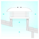 Nástrešný ventilátor Vortice Torrette s horizontálnym výfukom. Jednoduchá a ľahká montáž na akýkoľvek typ strechy obytných, komerčných a priemyselných budov. Ventilátor nie je vhodný pre odsávanie vzduchu priamo z krbu alebo kotlov.