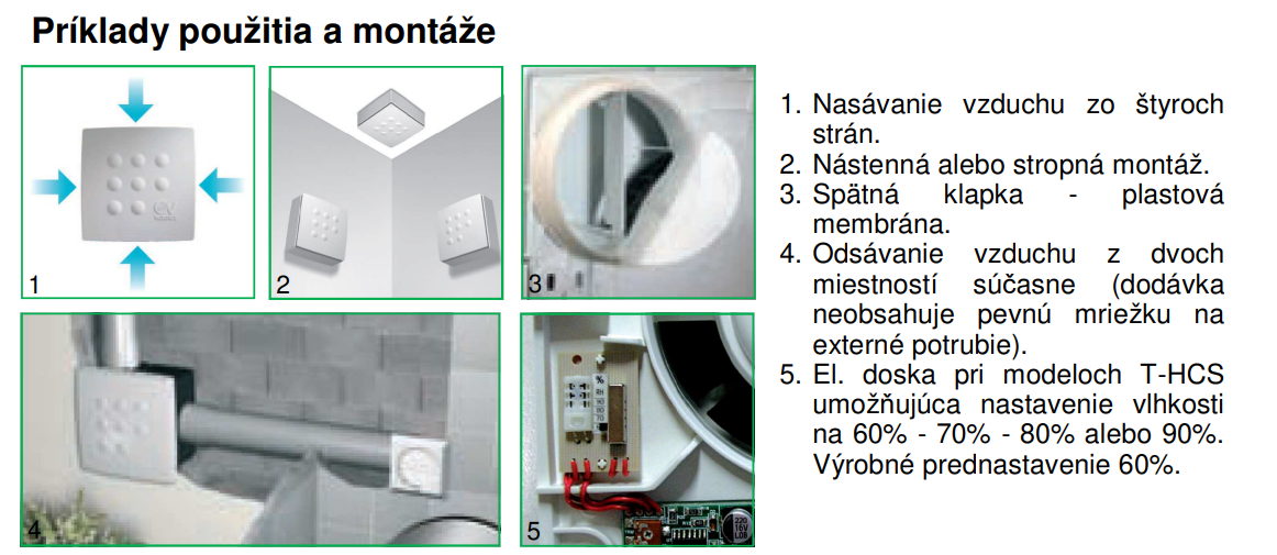 • Zabudovaná spätná klapka (plastová membrána) pre zabránenie spätného prúdenia vzduchu, ak ventilátor nie je v prevádzke.
