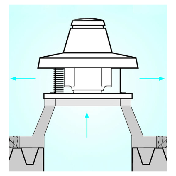 Nástrešný ventilátor Vortice Torrette s horizontálnym výfukom. Jednoduchá a ľahká montáž na akýkoľvek typ strechy obytných, komerčných a priemyselných budov. Ventilátor nie je vhodný pre odsávanie vzduchu priamo z krbu alebo kotlov.