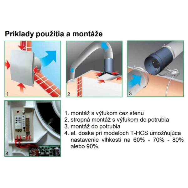Axiálny odsávací ventilátor vybavený DC-EC motorom, navrhnutý pre nepretržitú prevádzku. Vhodný pre menšie a stredne veľké miestnosti (kúpeľne, toalety, pivnice apod.) priamym výfukom alebo napojením na potrubie Ø 100mm. Montáž na stenu, do stropu alebo potrubia.