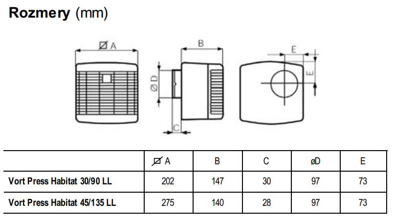 Ventilátor Vortice Vort Press Habitat LL 30/90