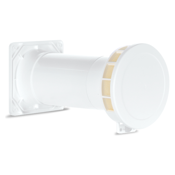 Automatický prívodný potrubný ventil (obsahuje klapku riadenú termostatom) s priemerom potrubia 100 mm (pre steny s hrúbkou 370 mm).