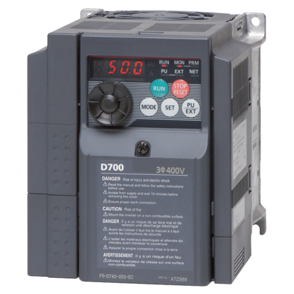 Regulátor otáčok (frekvenčný menič), vstup 3x400V / výstup 3x400V, maximálne zaťaženie 8A. Vybavený displejom a kartou PID. Certifikáty: CE / UL / CSA / EN / GOST / CCC. Stupeň ochrany: IP20.