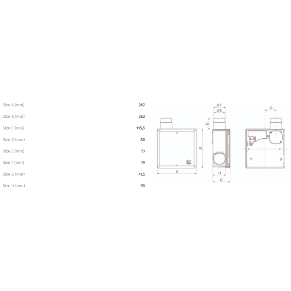 Pripojovací otvor na pripojenie výustky (QE-AD kód 21118, k dispozícii ako príslušenstvo), ktorá môže odvádzať vzduch z druhej miestnosti.