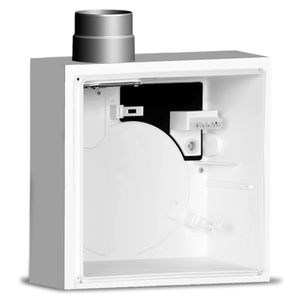 Krabica pre zapustenú montáž s požiarnou úpravou K90, s požiarnou spätnou klapkou K90 a bočným výfukom.