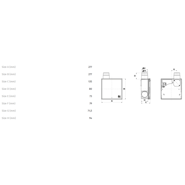 Vortice krabica QE-B I VK90 – krabica pre zapustenú montáž z ABS plastu, s nerezovým hrdlom obsahujúcim požiarnu spätnú klapku K90