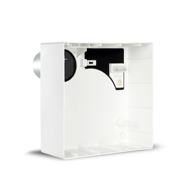 Krabica pre nástennú montáž z ABS plastu, s nerezovým hrdlom obsahujúcim požiarnu spätnú klapku K90.