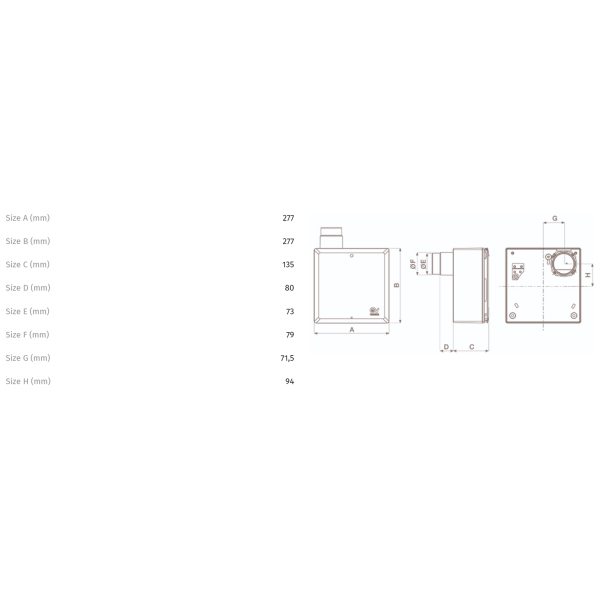 Vortice krabica QE-B M VK90 – krabica pre nástennú montáž z ABS plastu, s nerezovým hrdlom obsahujúcim požiarnu spätnú klapku K90