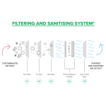 • Redukcia mikroorganizmov vo vzduchu, vďaka použitiu dvoch vysokoúčinných absolútnych filtrov HEPA H14, schopných zachytiť až do 99.995% mikročastíc (priemer 0.3 µm).