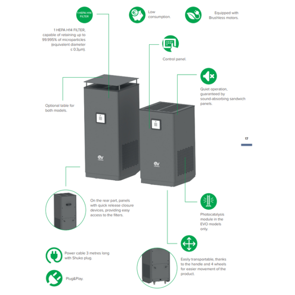 • ľahká výmena filtrov a fotokatalytického modulu (modely EVO), vďaka rýchlo odnímateľným panelom