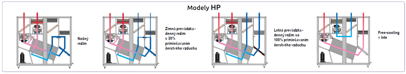- Dvojité krížové výmenníky tepla s vysokou účinnosťou viac ako 85% a nízkou tlakovou stratou.