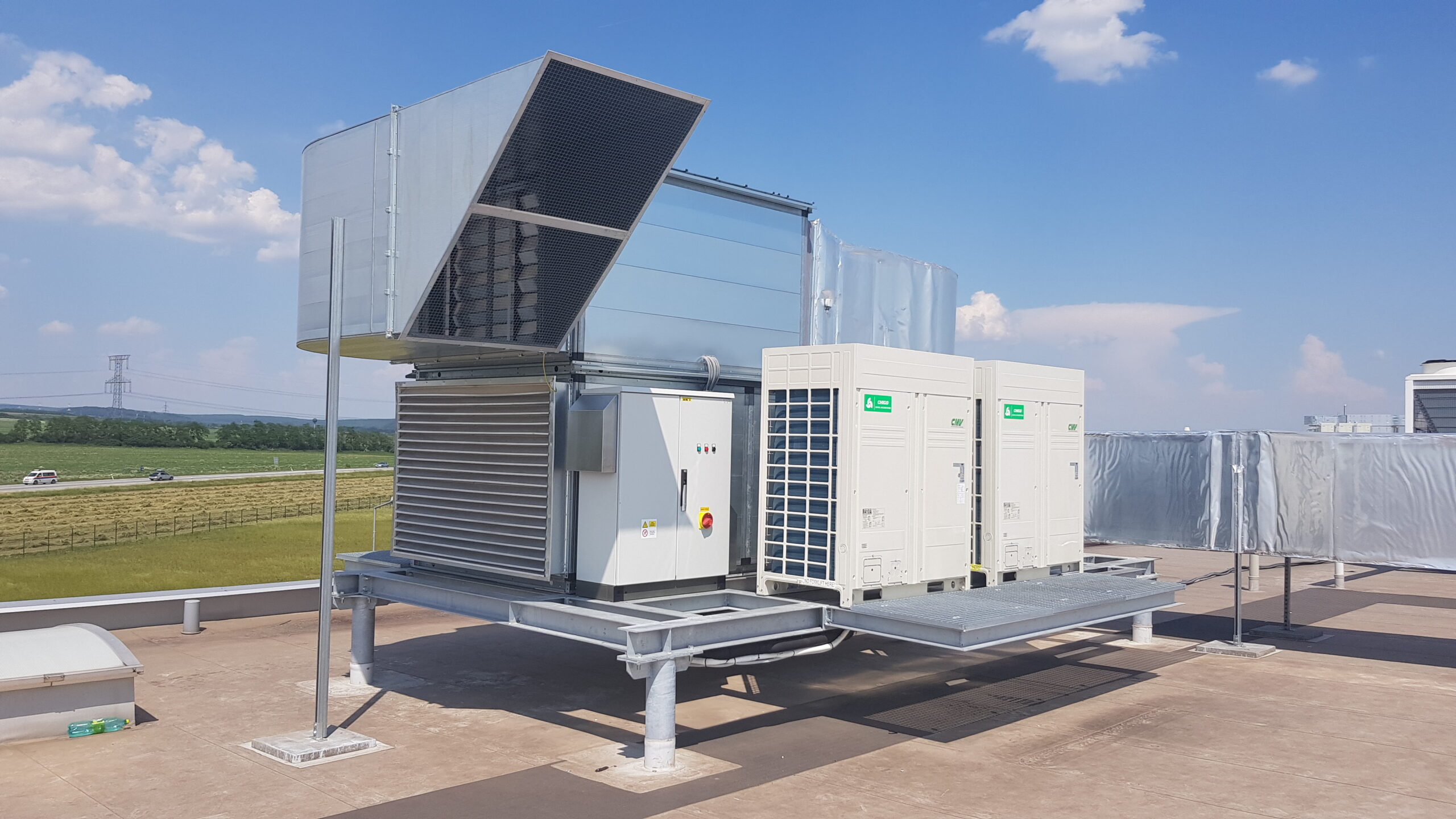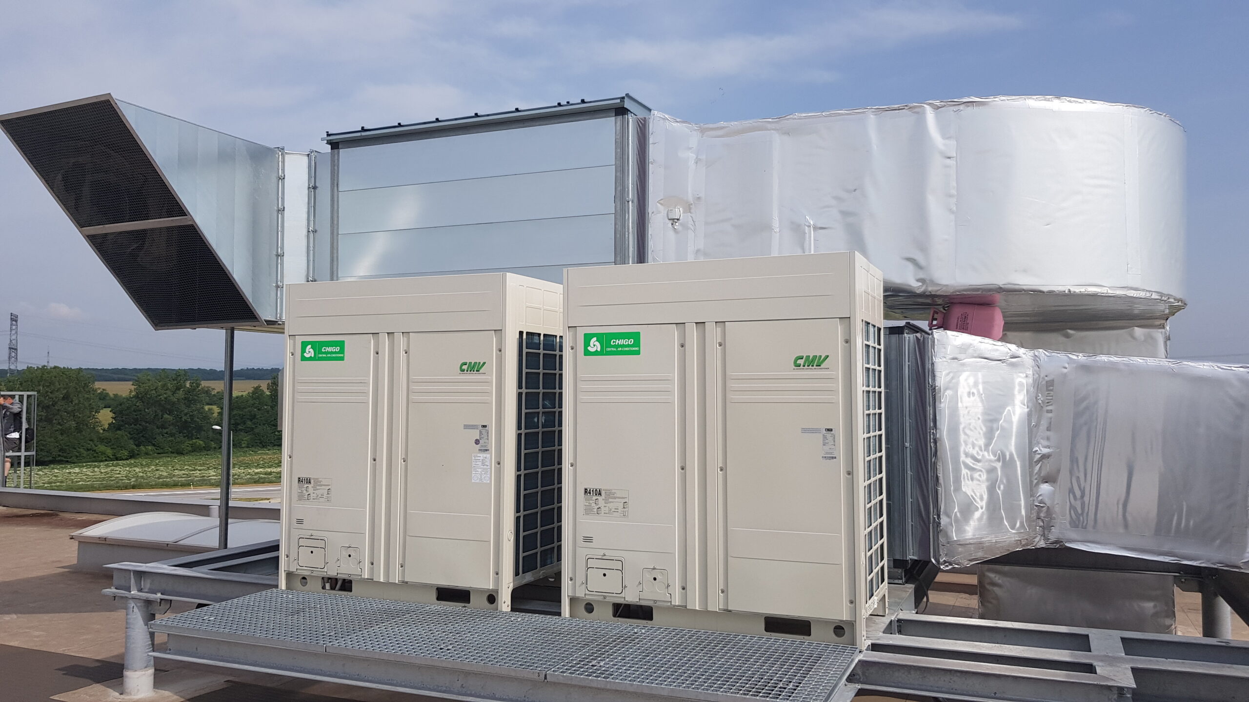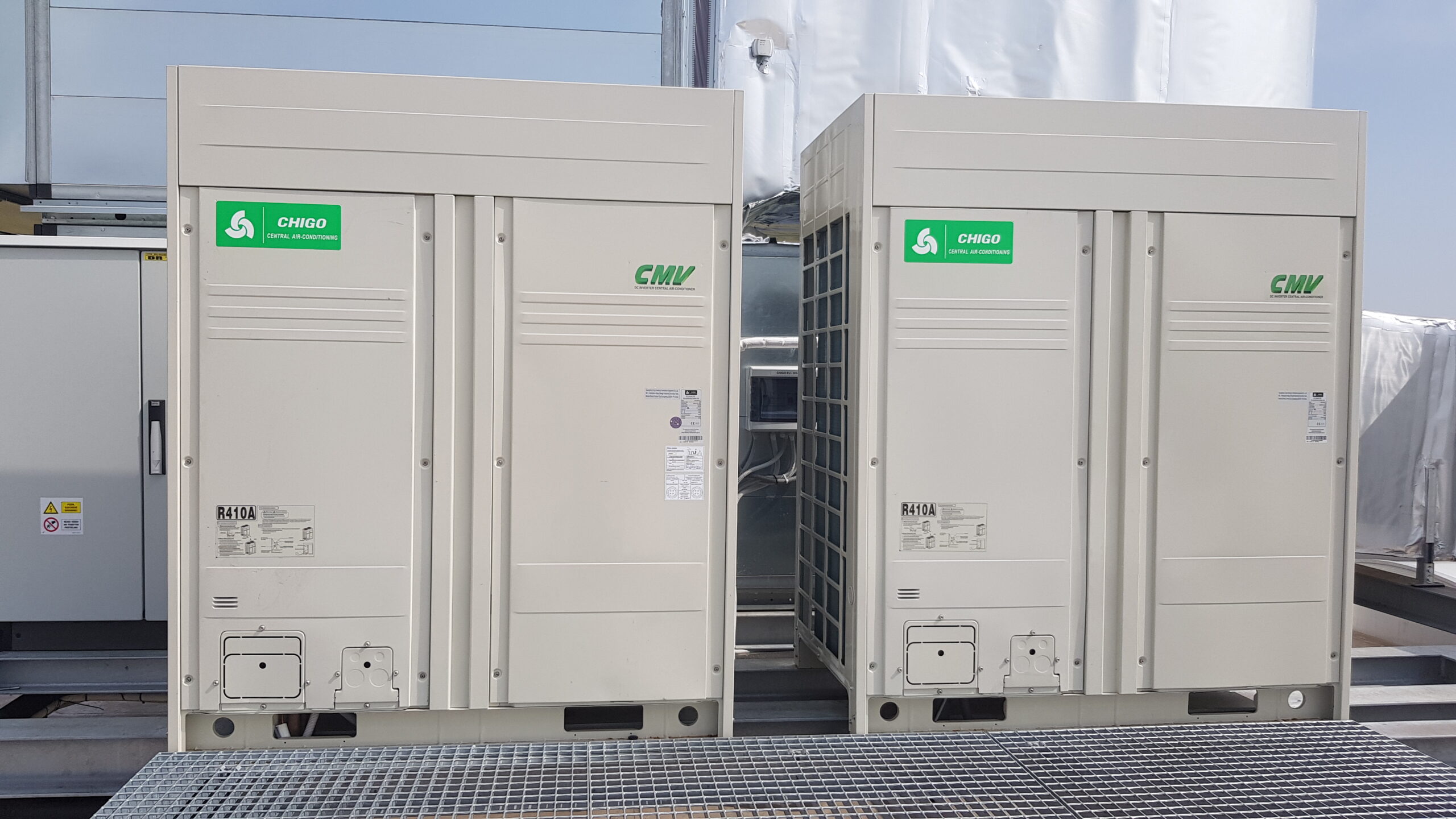 Použitá technológia: Kondenzačné jednotky s AHU kitom pre externý výparník + 2x CHIGO CMV-V615W/ZR1-C + 2x AHU KIT KM 113.17 a expanzné ventily