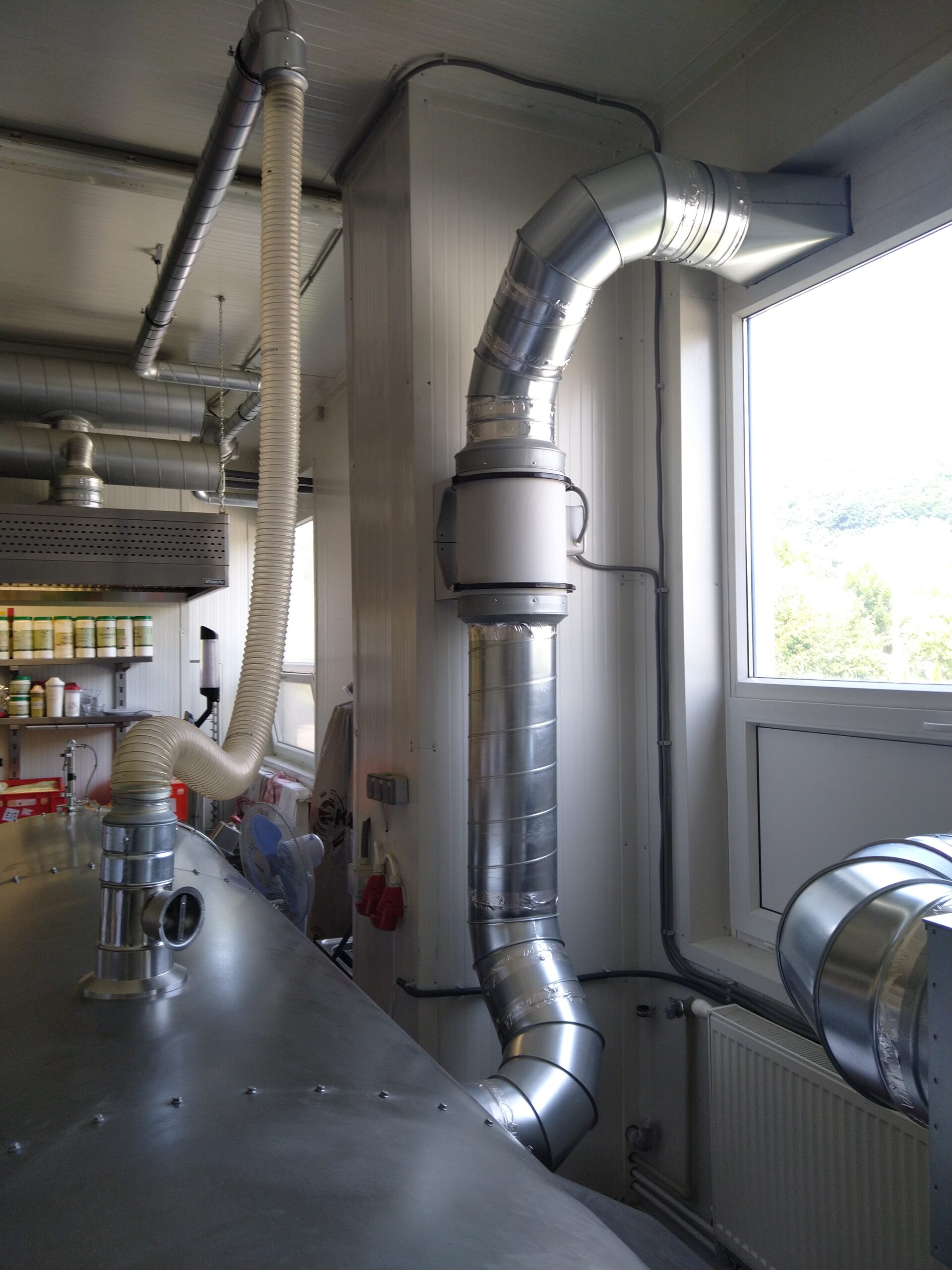 Použitá technológia: Prívodný a odvodný ventilátor pre výrobnú technológiu - VORTICE VORT QBK HE COM 400 4T, VORTICE LINEO 315